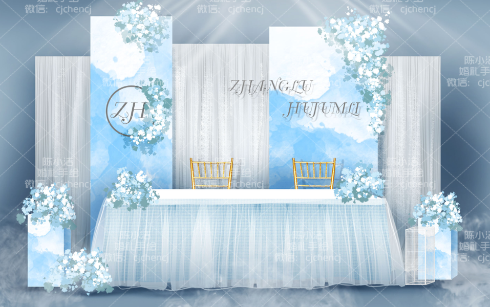 早期小预算婚礼3d设计图 蓝色飞马独角兽婚礼