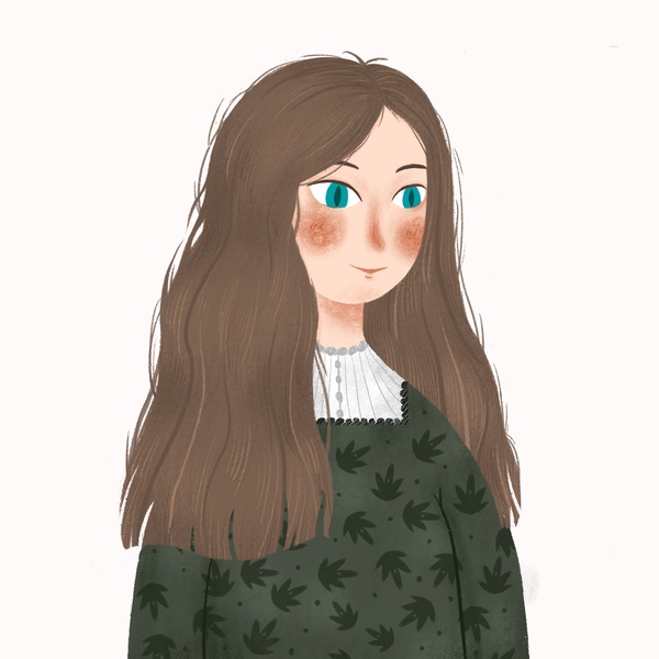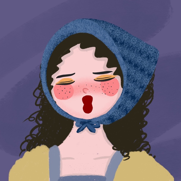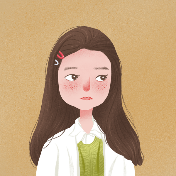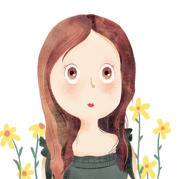 花栀子插画:偏复古色磨砂感可爱女生头像