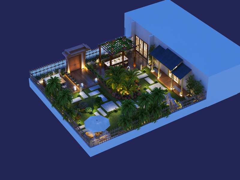 庭院设计实景案例——郑州天伦庄园别墅178平米花园