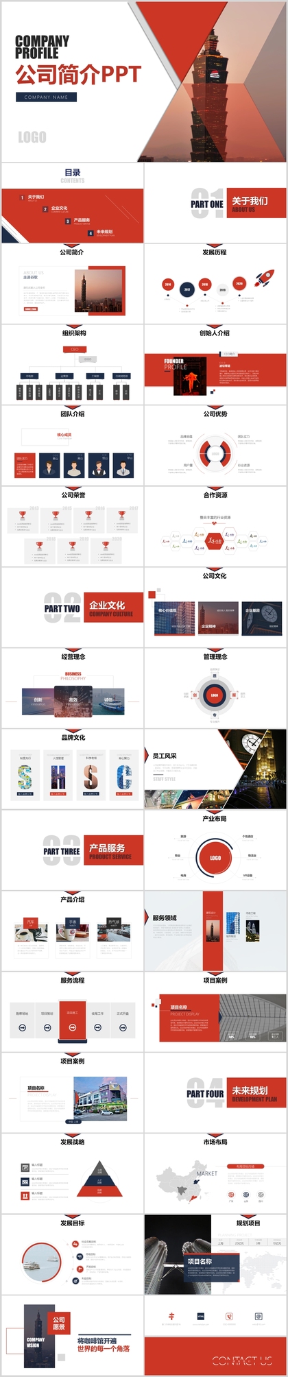大气红色公司介绍企业宣传项目推广通用PPT模板