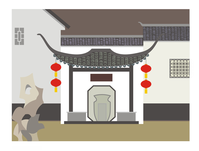 乌镇古风建筑插画