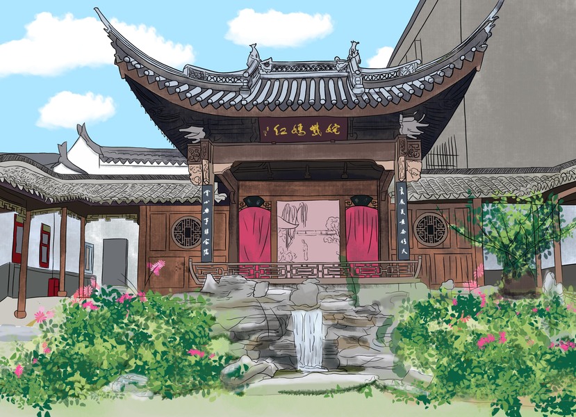 汤显祖纪念馆手绘地图、场景设计、IP卡通形象