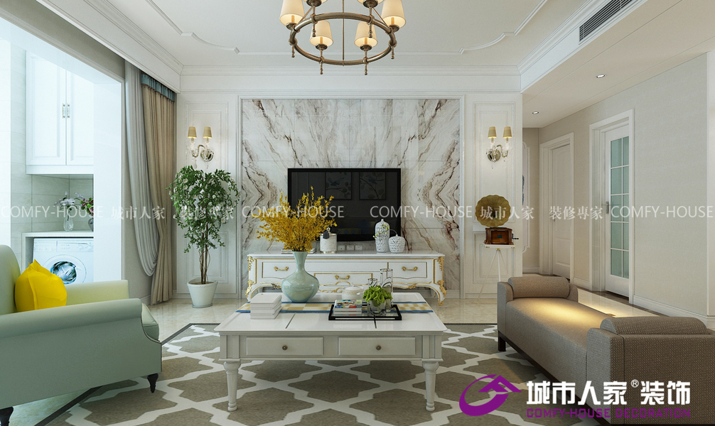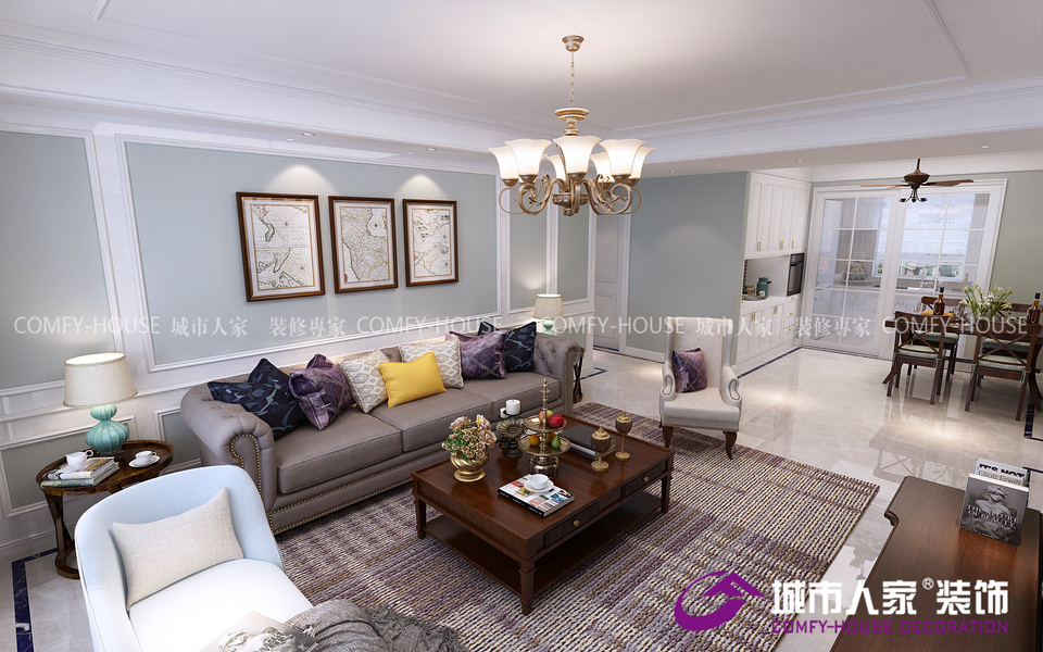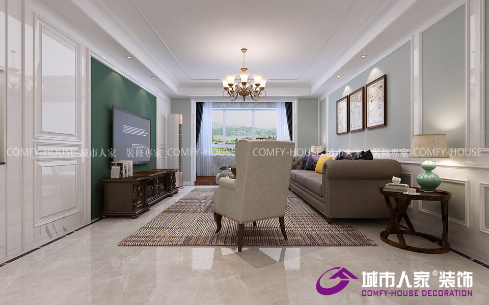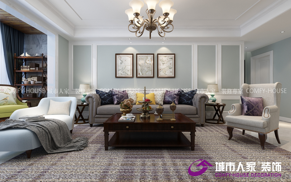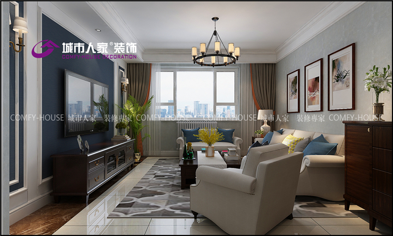城市人家 中建锦绣城 三室130平 美式风格装修效果图