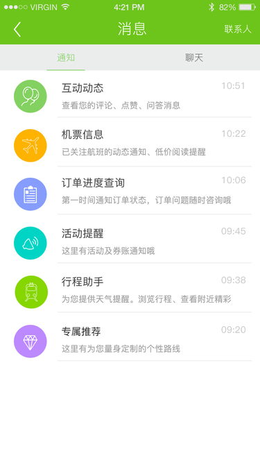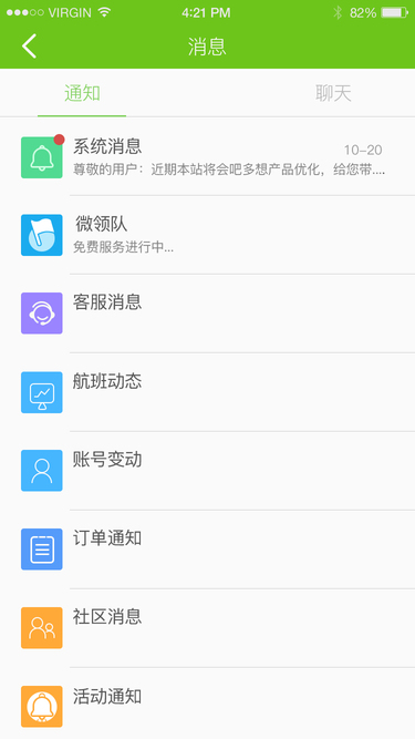 消息及我的界面 绿色为主题色