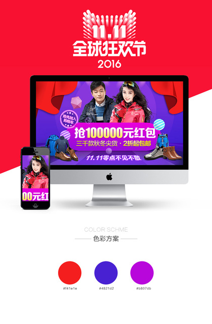 天猫双十一海报 男鞋双十一页面 狂欢返场
