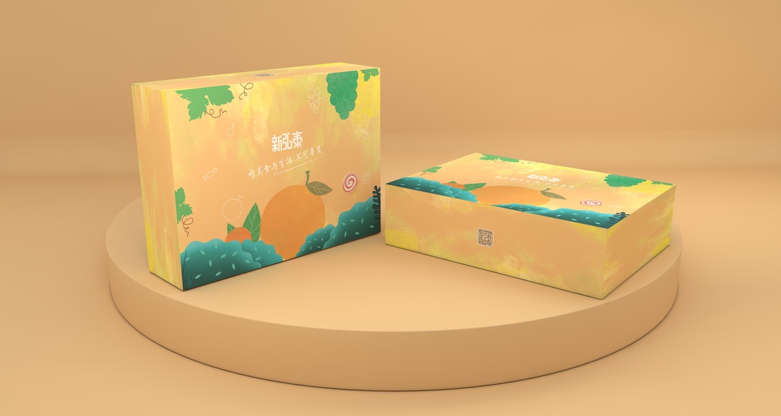 {原创}水果食品包装礼盒手绘插画设计