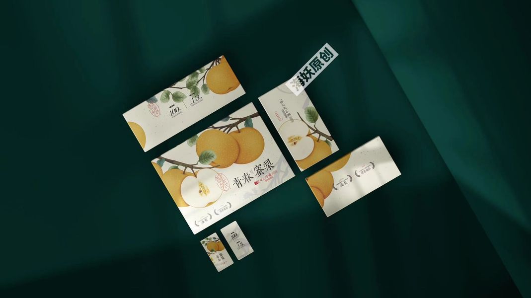 {原创}梨水果农产品包装礼盒手绘插画设计