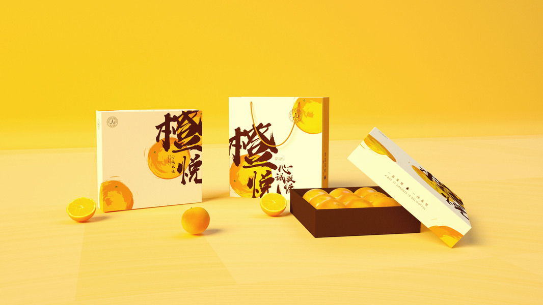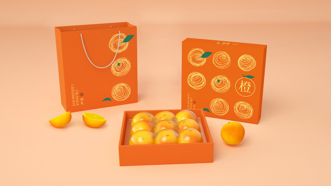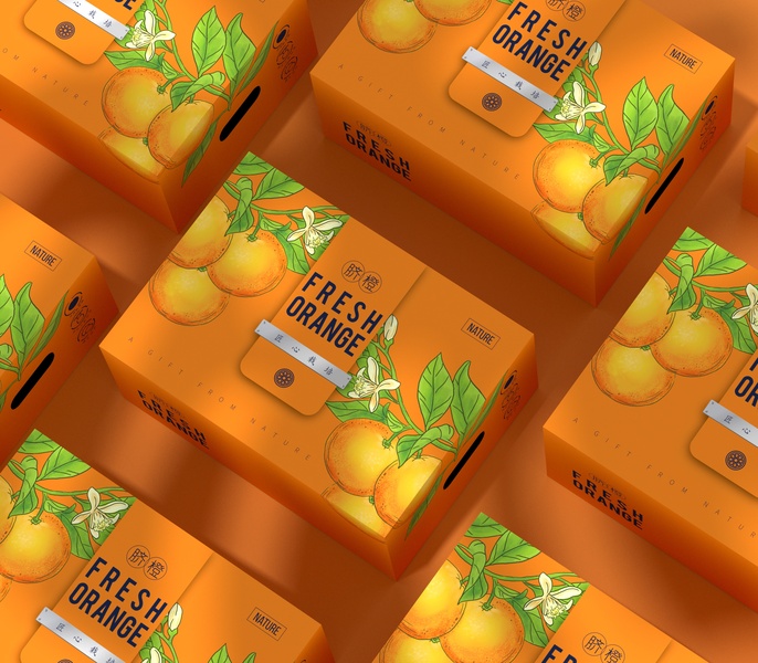 橙子包装盒、水果通用包装、简约高端大气、橙子通用