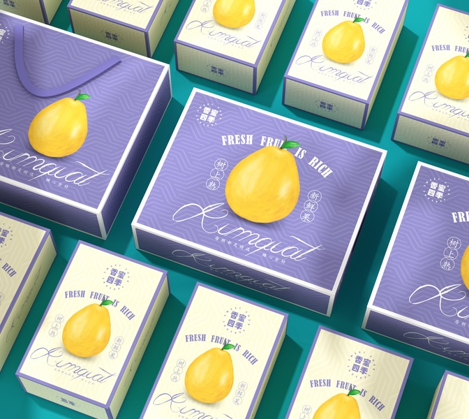 {原创}金桔水果包装设计手绘插画礼盒
