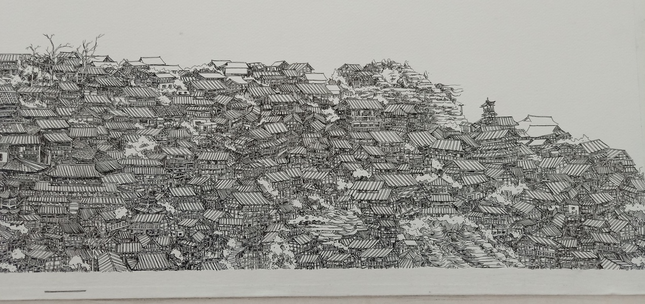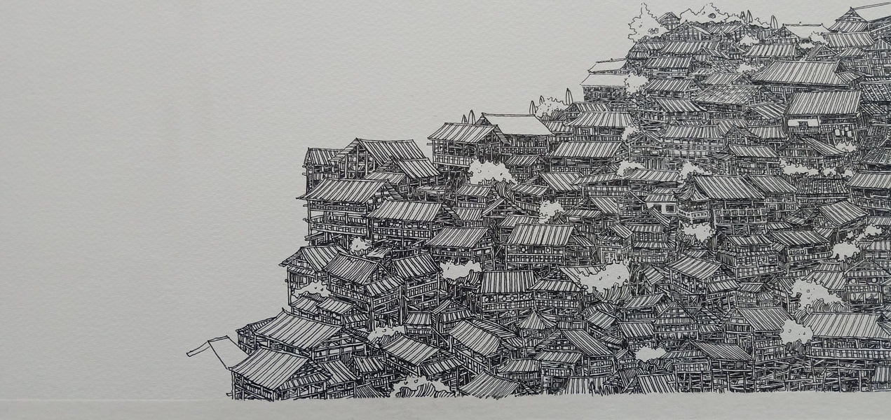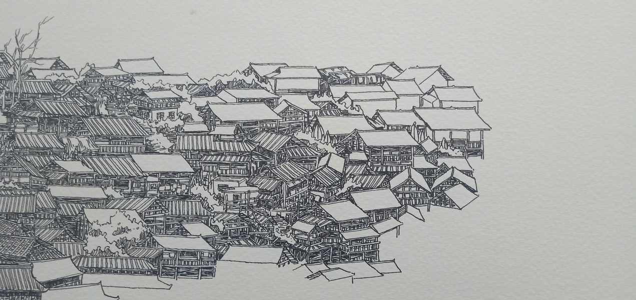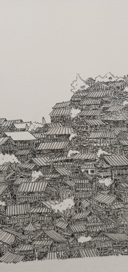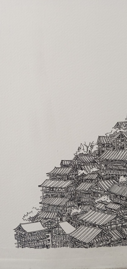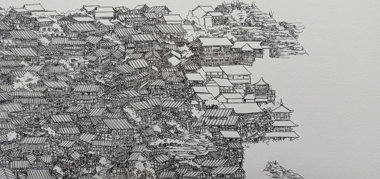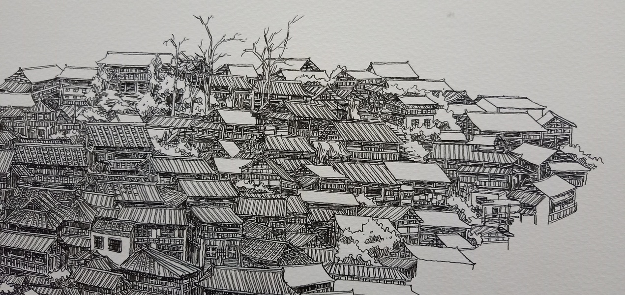 范炯钢笔画手绘表现《千户苗寨》
