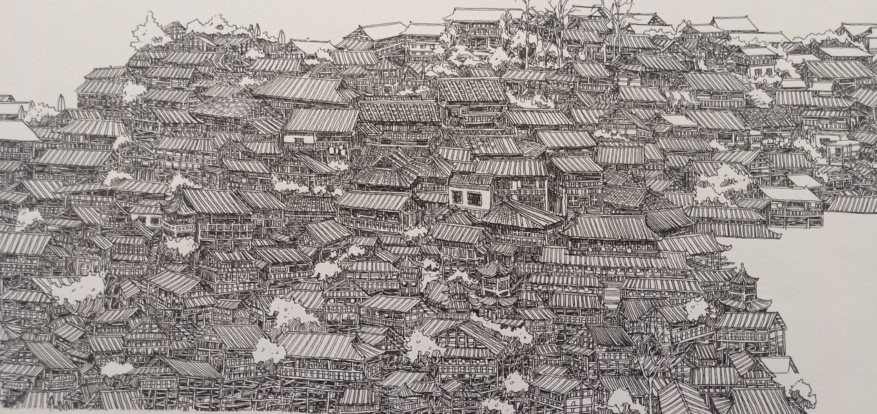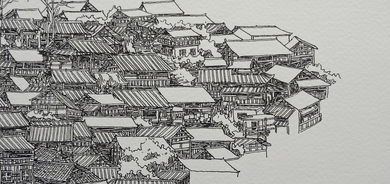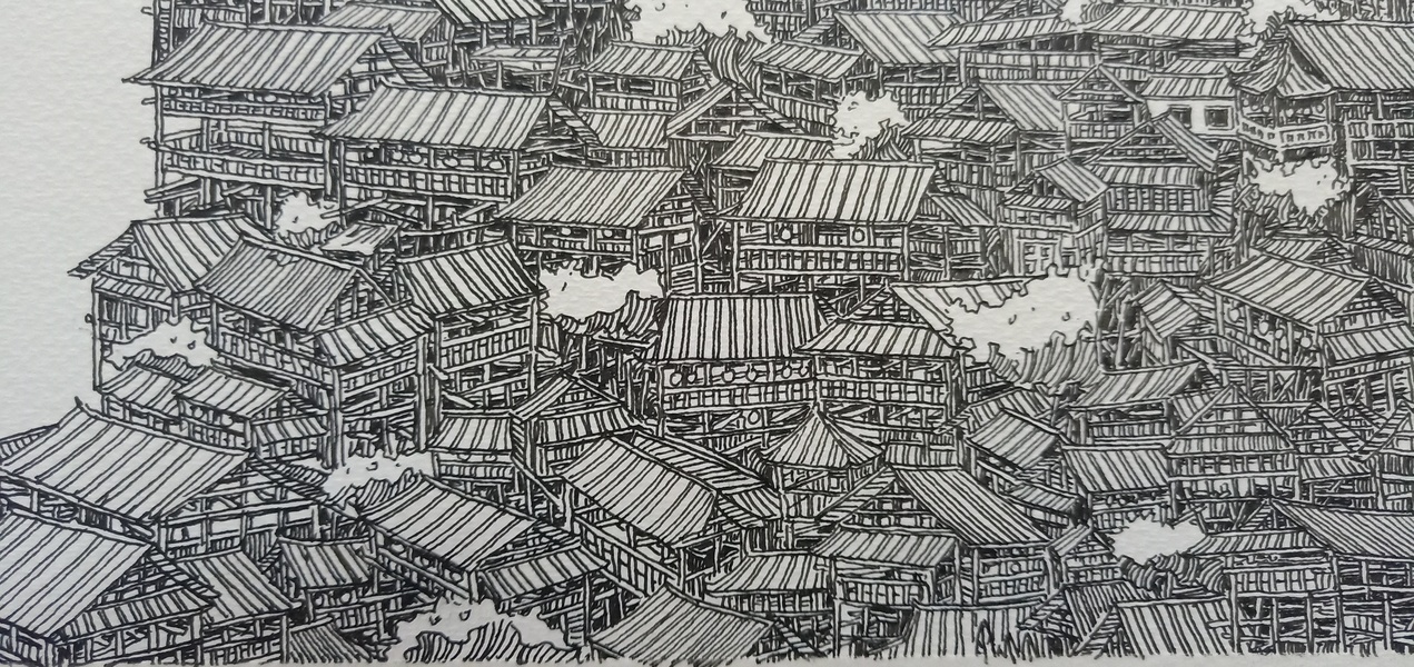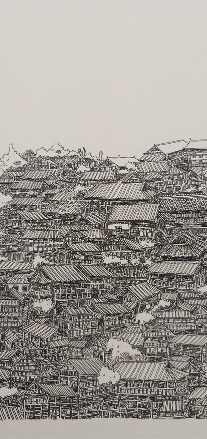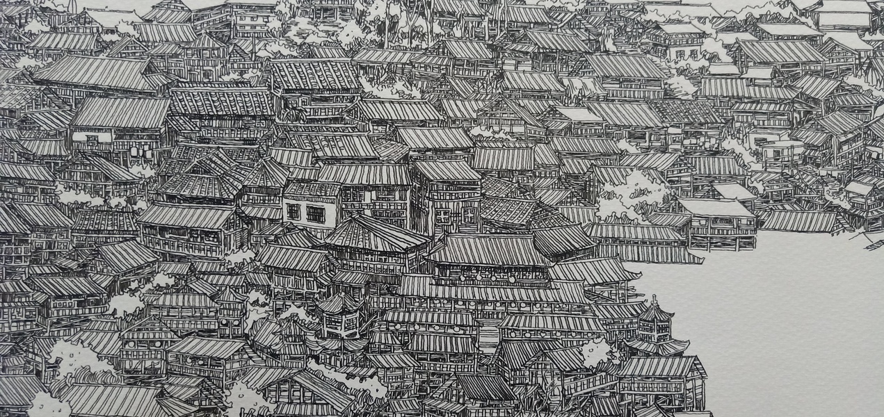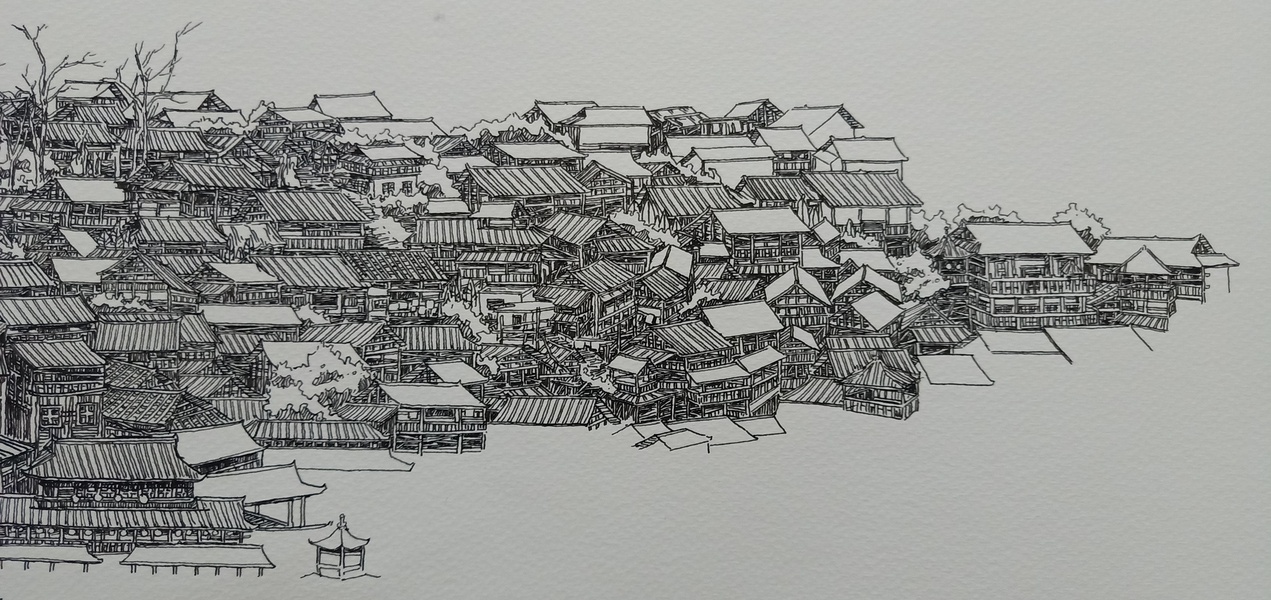 范炯钢笔画手绘表现《千户苗寨》