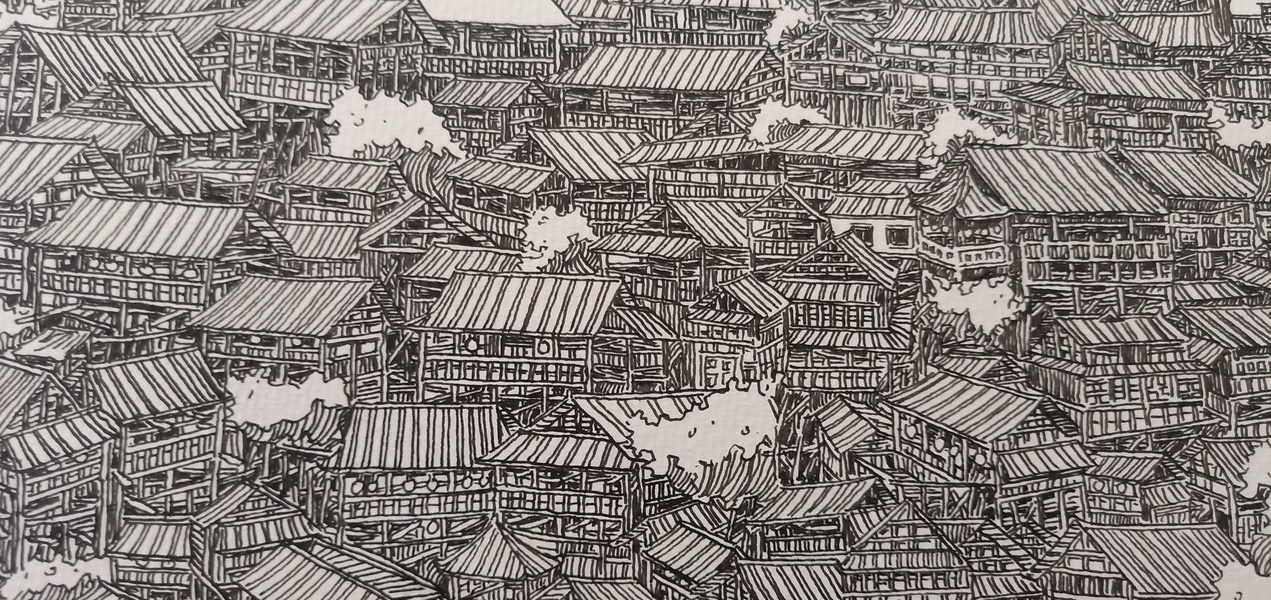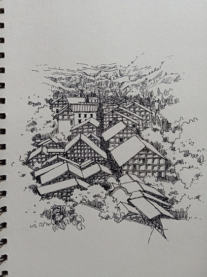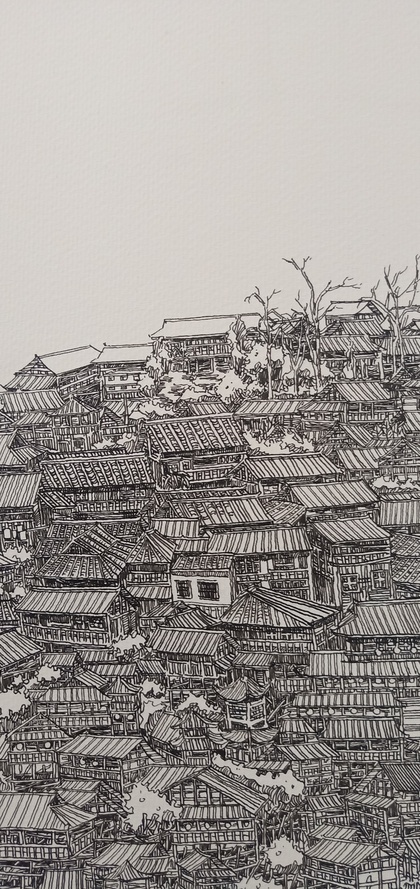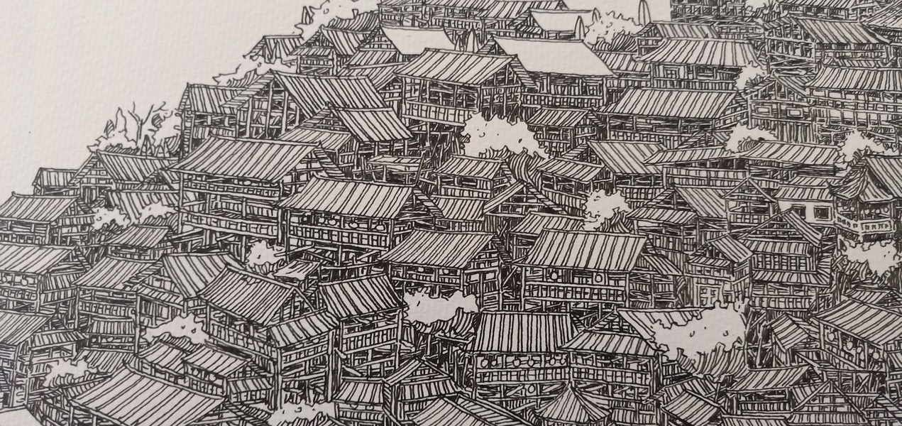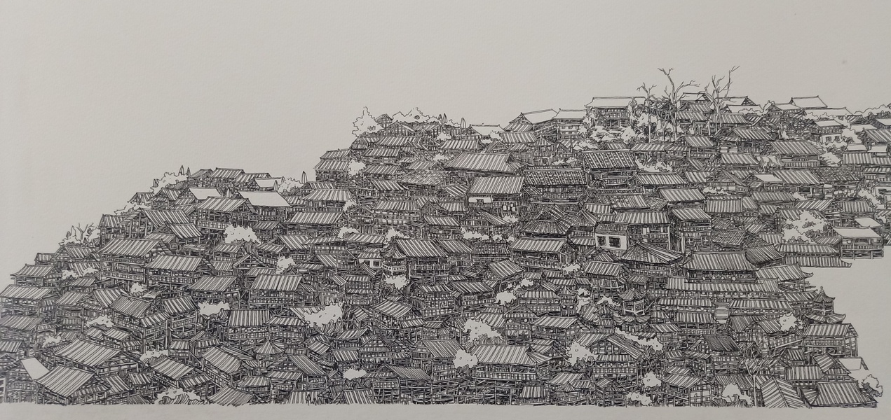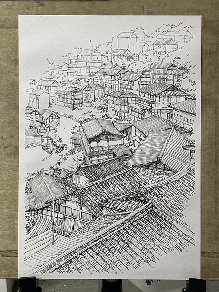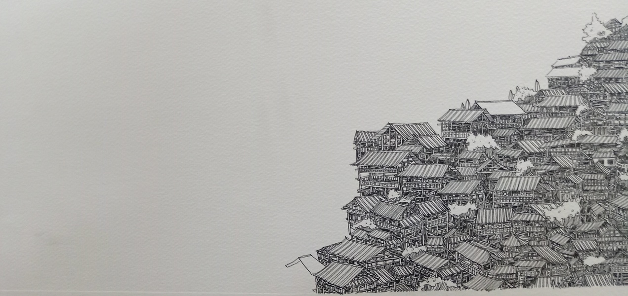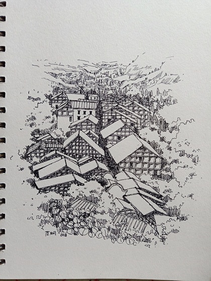 范炯钢笔画手绘表现《千户苗寨》