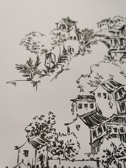 江南水乡-针管笔