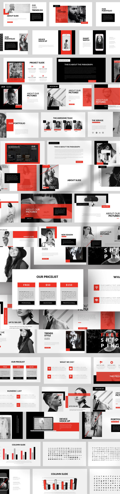 80多页红色扁平化简约大气商务多用途动画PPT模板