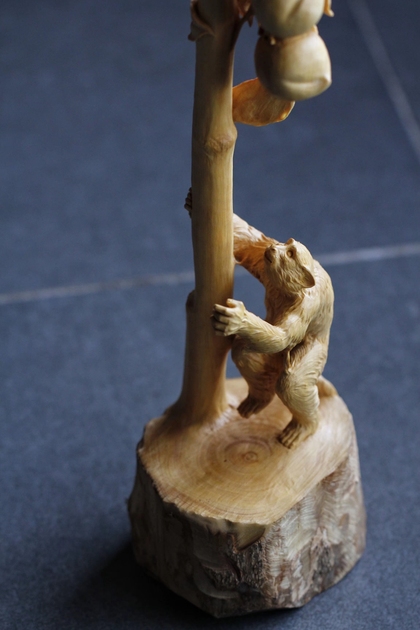 灵猴祝寿 | 笔挂 黄杨木纯手工雕刻 规格:12