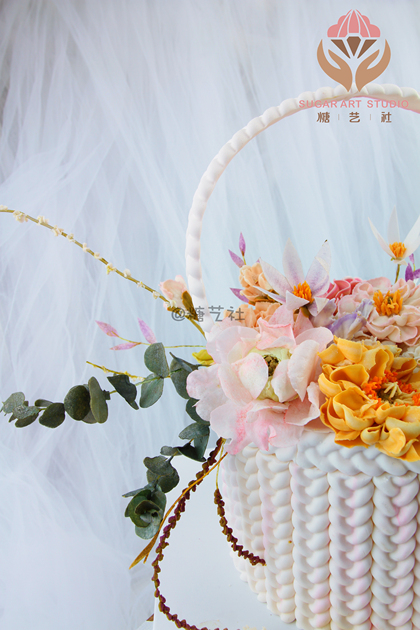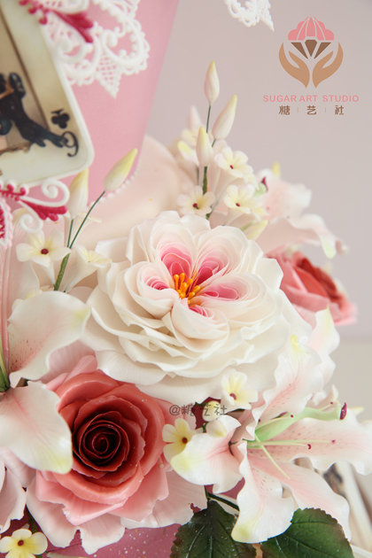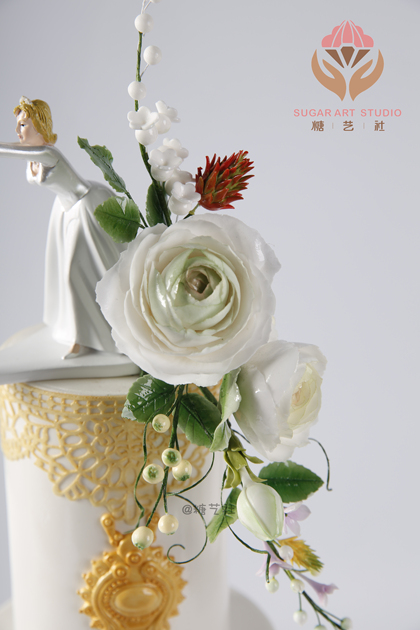 糖艺社翻糖蛋糕-翻糖/糖霜吊线技法-婚礼蛋糕作品