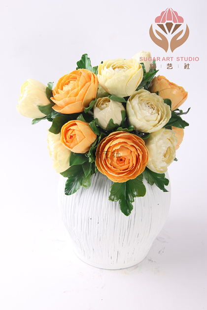 翻糖工艺大师顾碧清老师翻糖花作品--毛茛