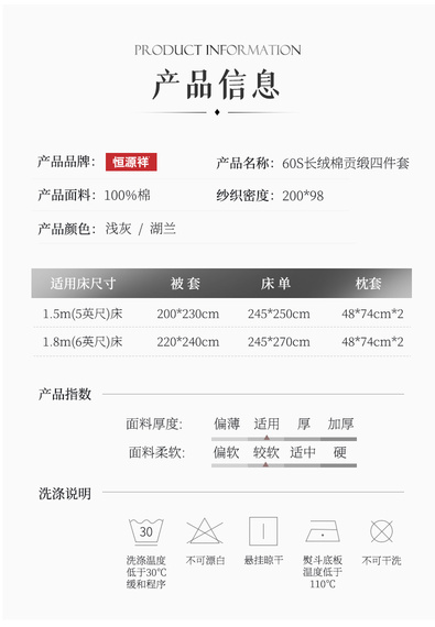 60支长绒棉四件套详情页