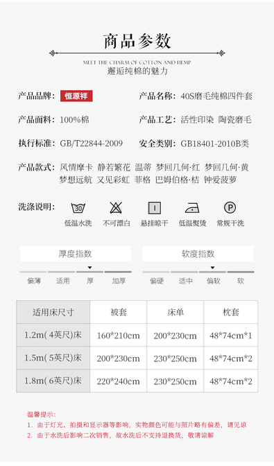 40支磨毛四件套详情页