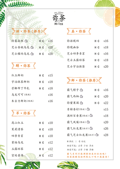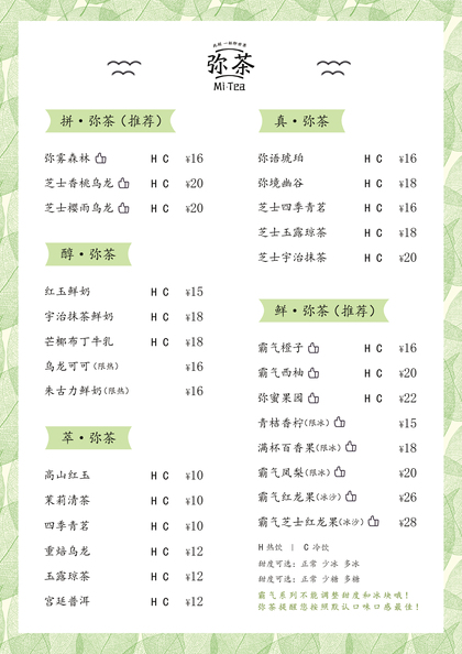 奶茶菜单