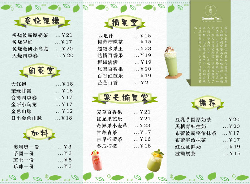 接奶茶设计,饭店设计的菜单