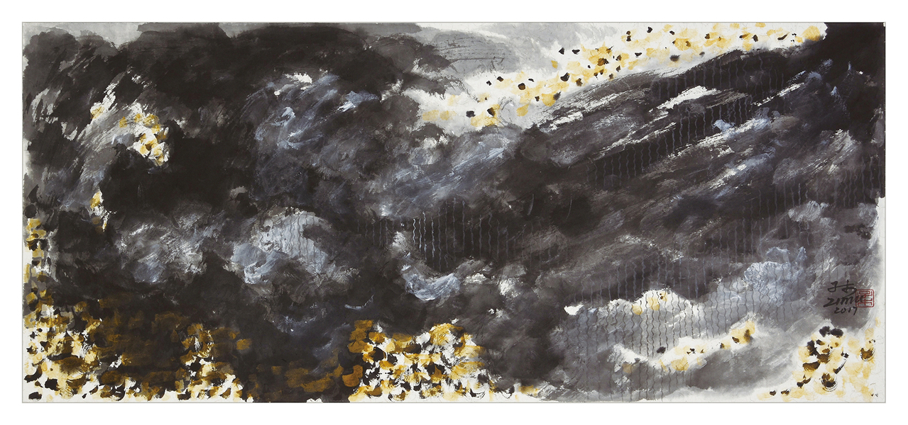 裂彩炫彩画:山中有水,水中有山,山水互抱,美如蓬莱仙境。