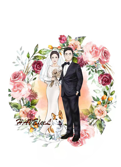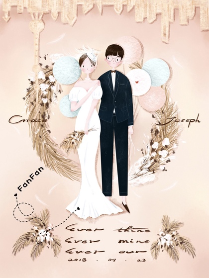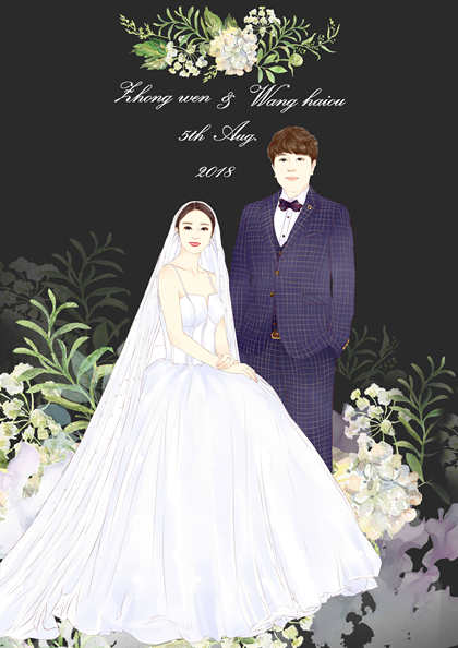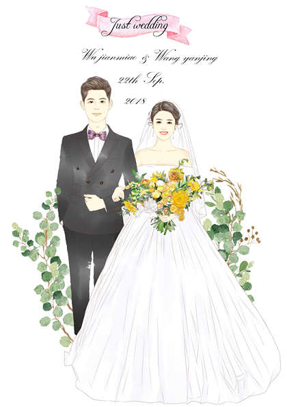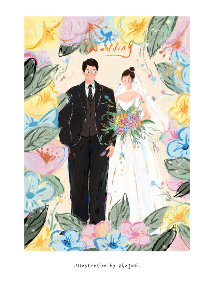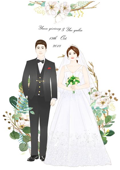 情侣婚礼插画|手绘【婚纱照】|婚庆人物设计新郎新娘