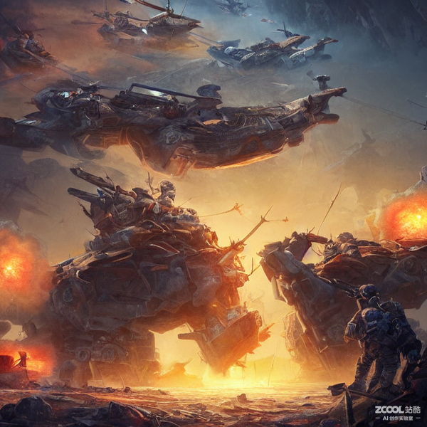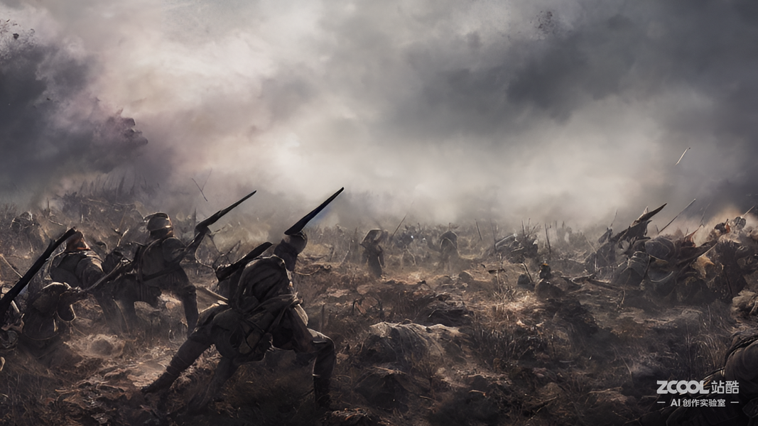 #AI创作实验室#充满硝烟的战场,两支军队在交锋