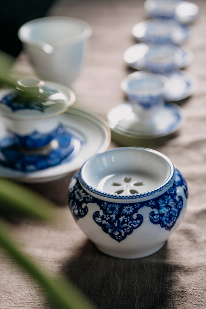 景德镇手绘青花玲珑茶具套组