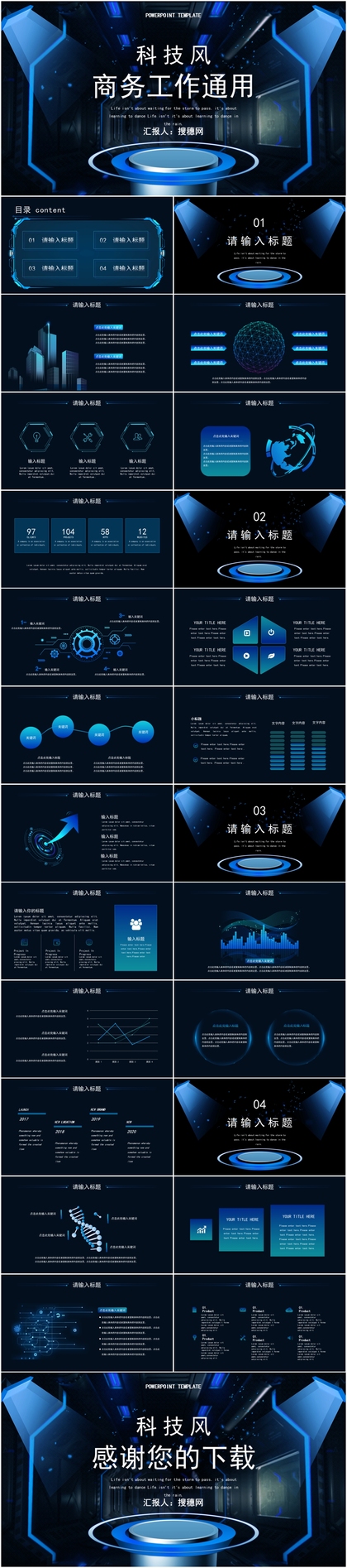 创新科技预见未来高端蓝色移动互联网PPT模板