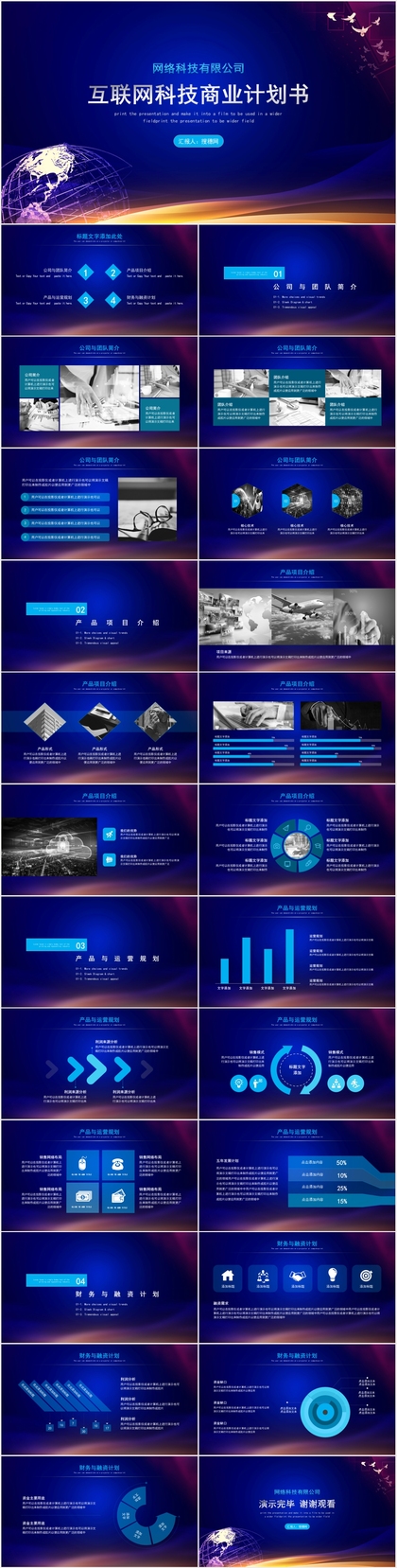 蓝色炫酷互联网高科技公司企业商业项目计划书PPT模板