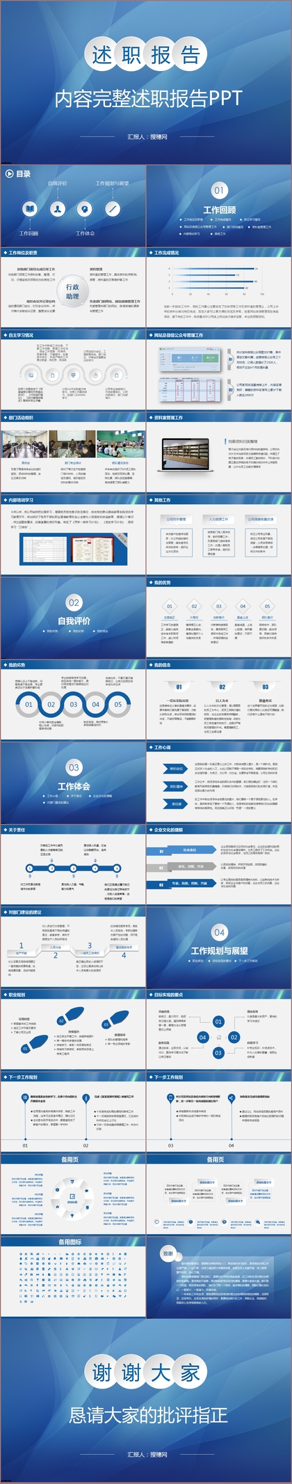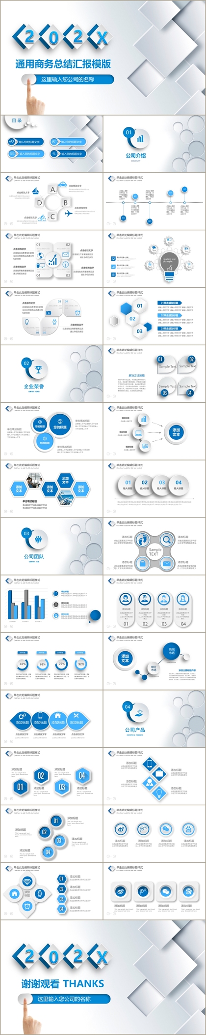 简洁实用蓝色商务工作总结计划项目汇报通用PPT模板