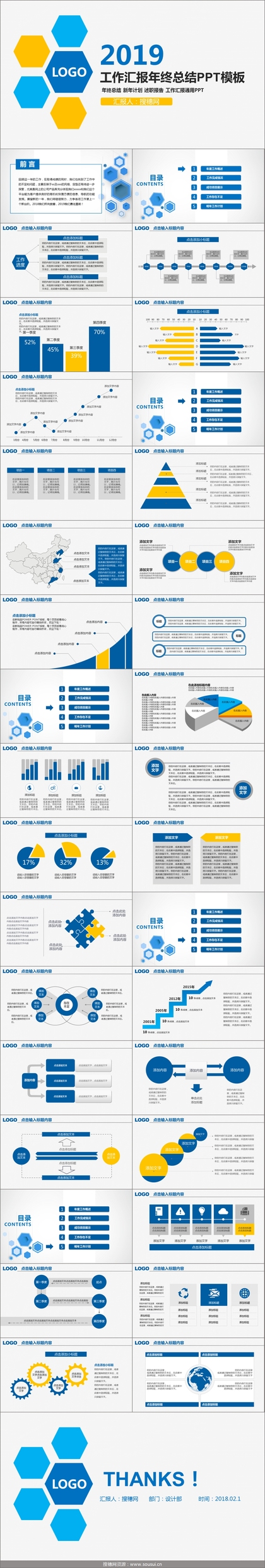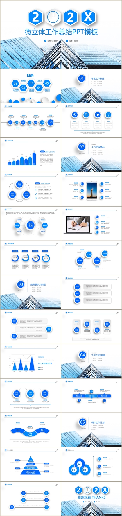 简洁蓝色微立体年度工作汇报商务通用PPT模板