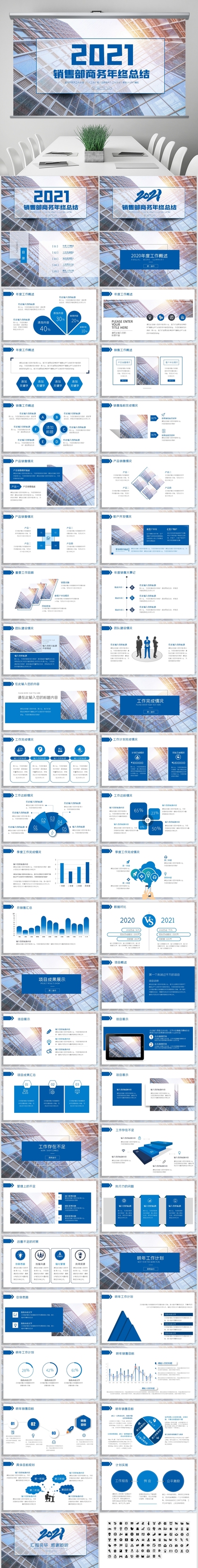 大气蓝色微粒体商务部门工作总结企业宣传PPT模板