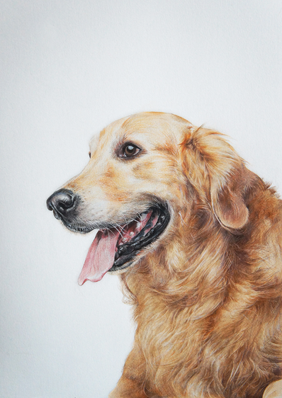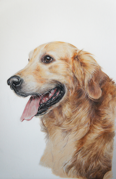 彩铅狗狗-金毛