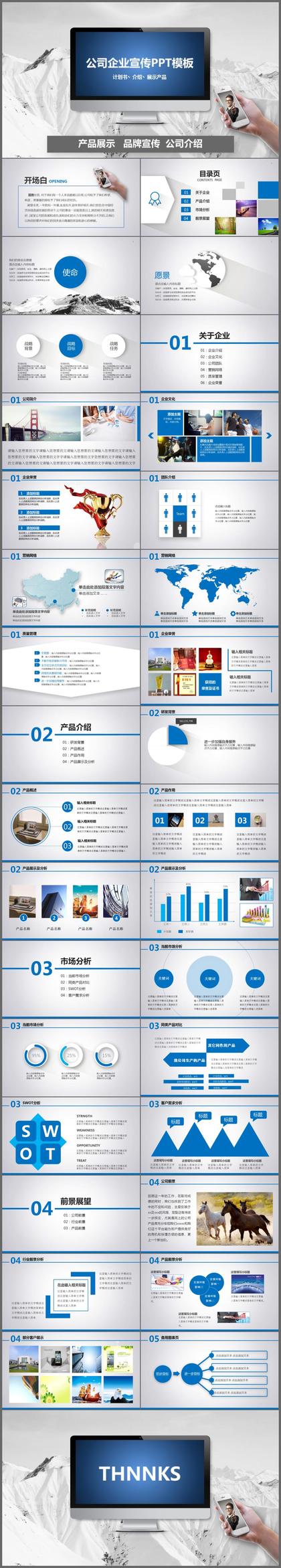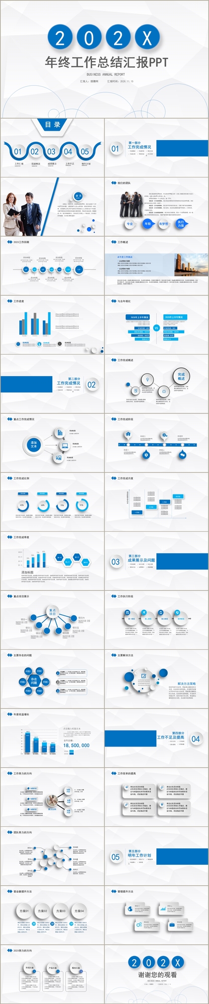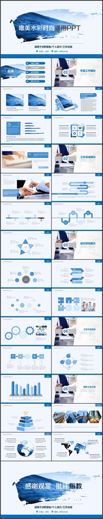 时尚蓝色简约风商务企业工作总结汇报PPT模板