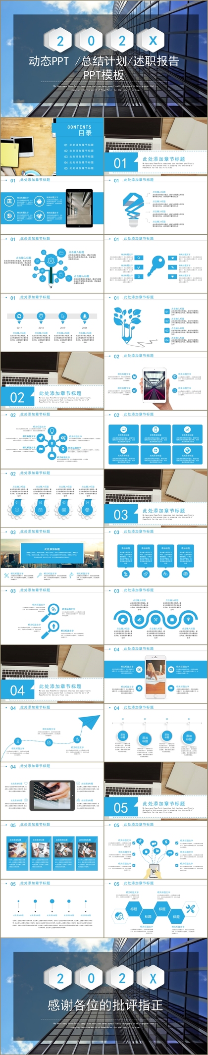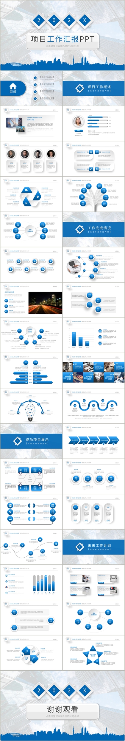 简洁实用蓝色商务工作总结计划项目汇报通用PPT模板