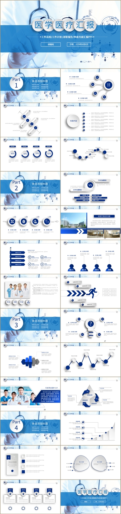 蓝色微立体简约风医学医疗工作总结汇报PPT模板