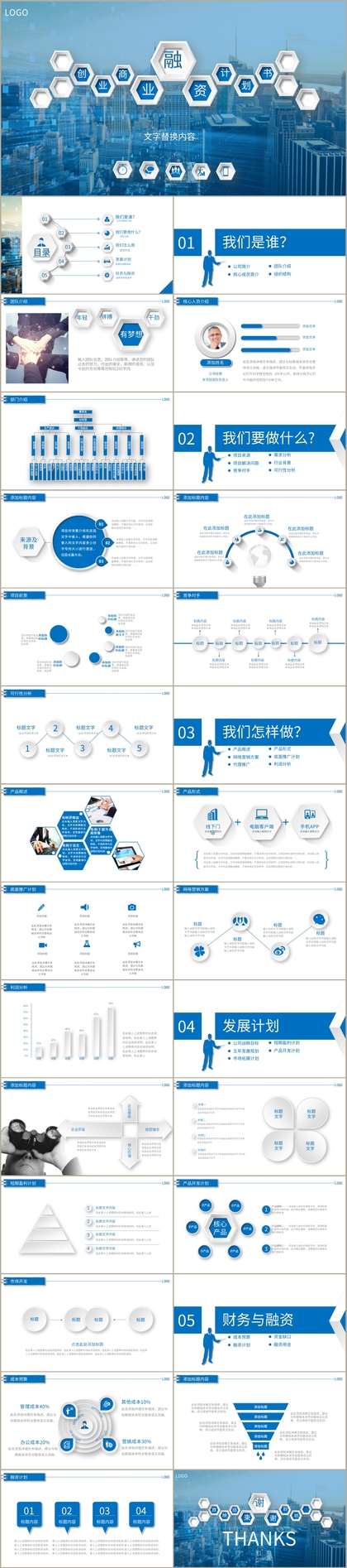 微立体蓝色创业商业融资计划书商务通用PPT模板