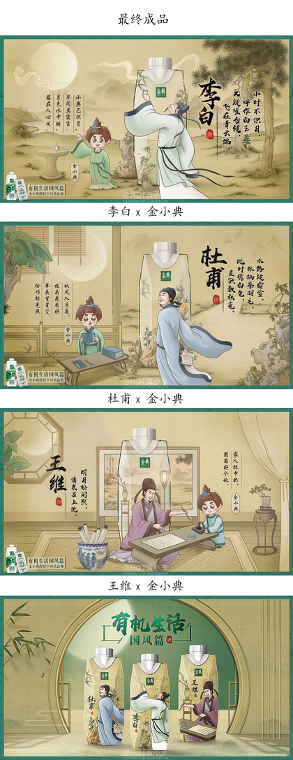 【伊利金典牛奶】国风仿工笔商业插画