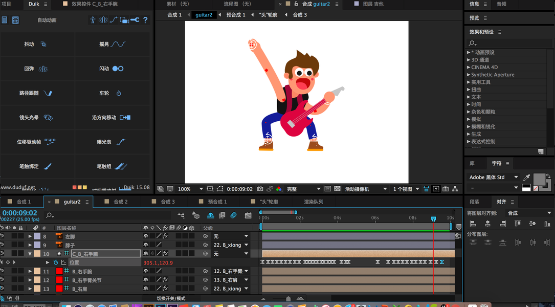 AE插件自由骨骼puppettoolsl使用方法!