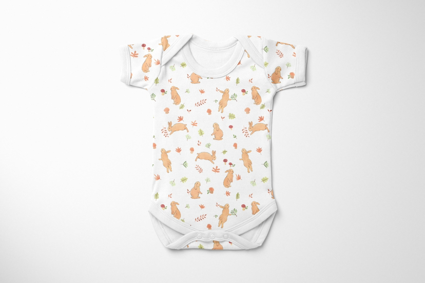 四方连续产品图案设计及效果应用-萌趣小梨&萝卜小兔