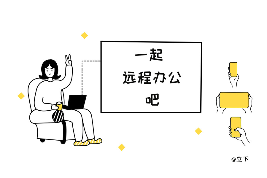 简约线条风格远程办公插画