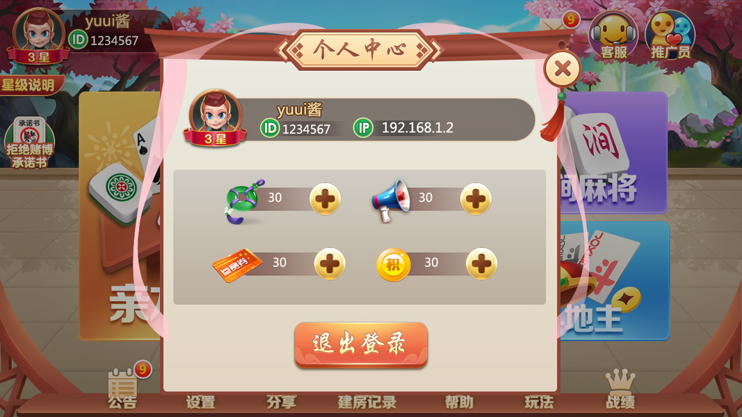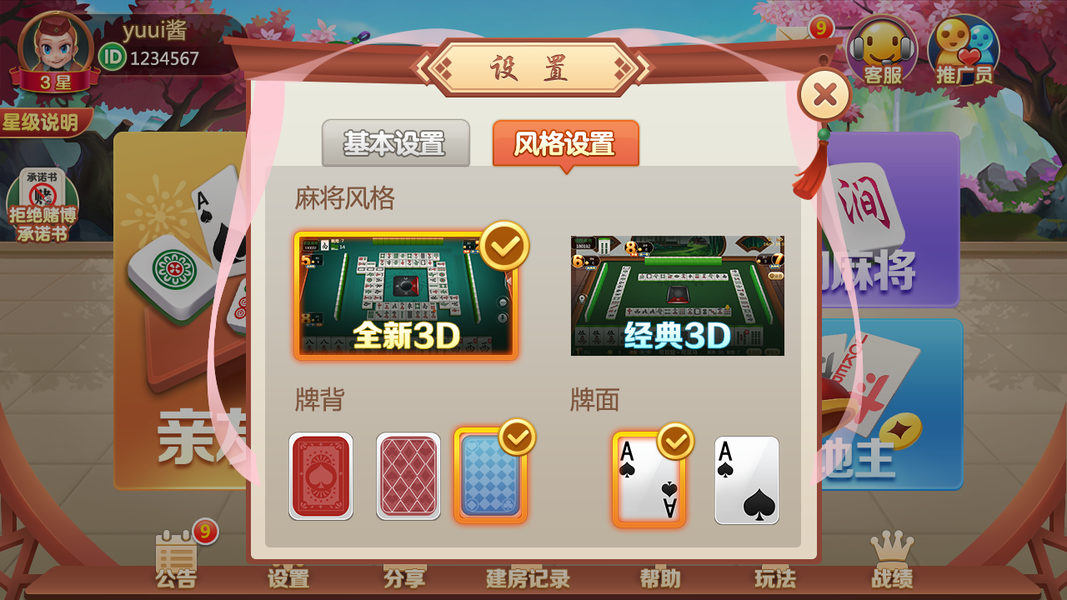 暖心棋牌麻将界面