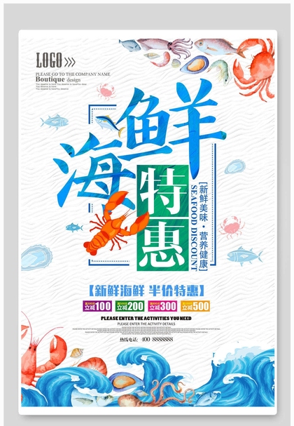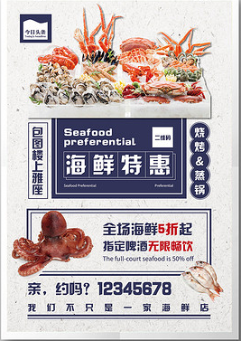 海鲜特惠促销海报设计
