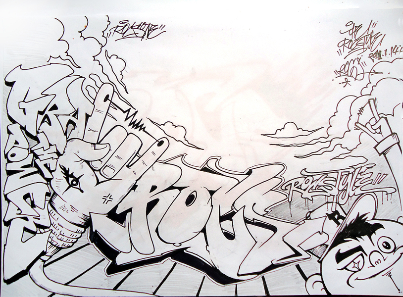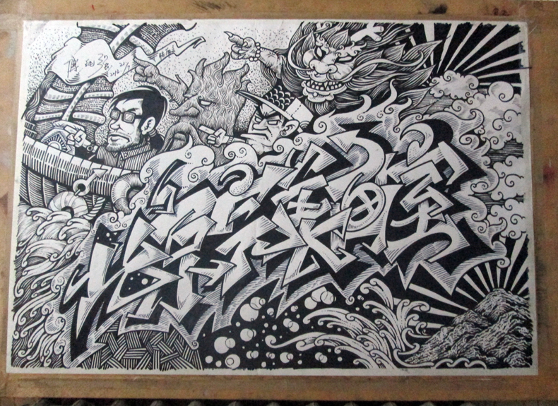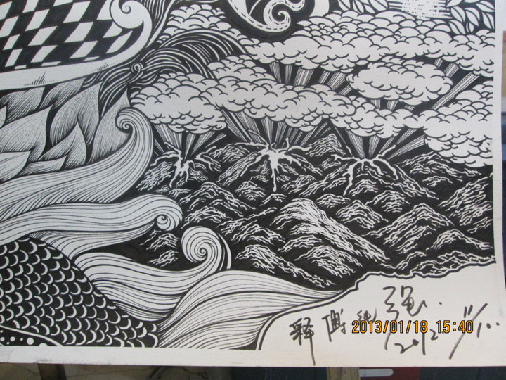 3小时 对开 纸上涂鸦 (给学生做的范画)