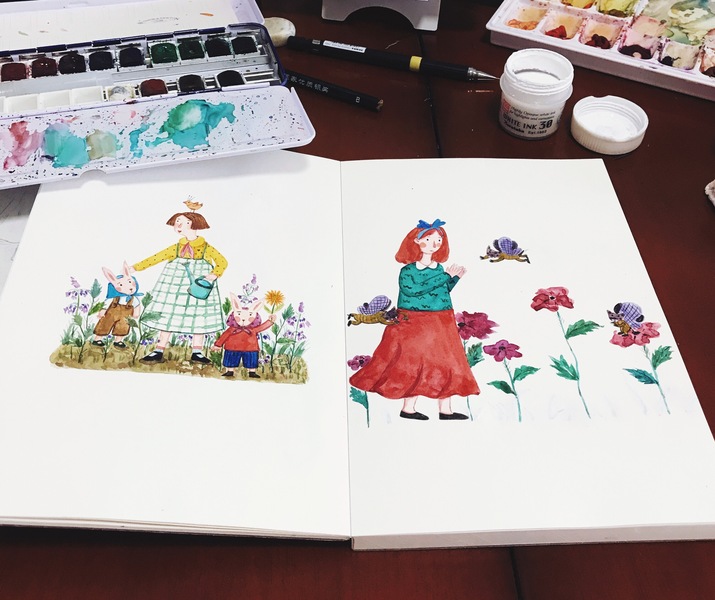 鸡翅笔下五颜六色的女孩子们——丙烯马克笔儿童装饰画