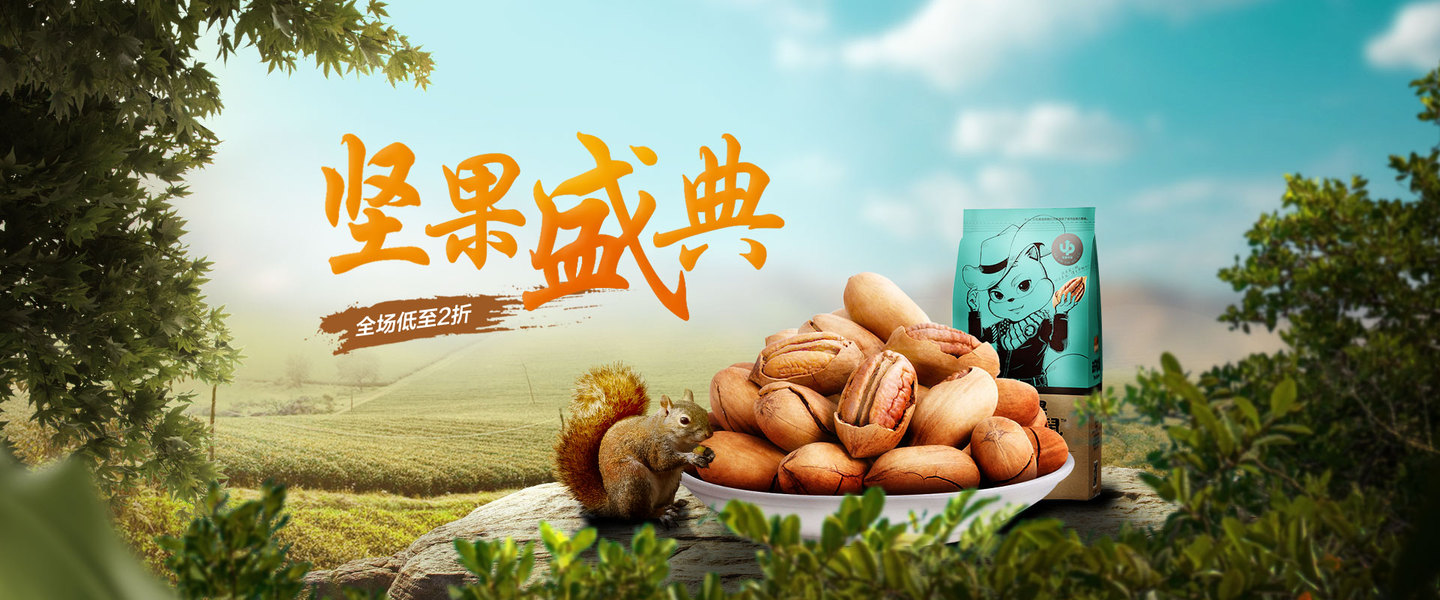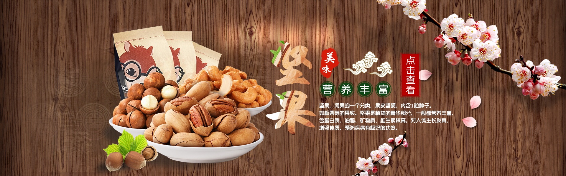 惠林食品 坚果 零食 干果 蜜饯 速食快销食品 店招海报