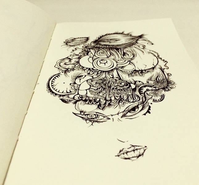 「少女的綺想」针管笔练习作。