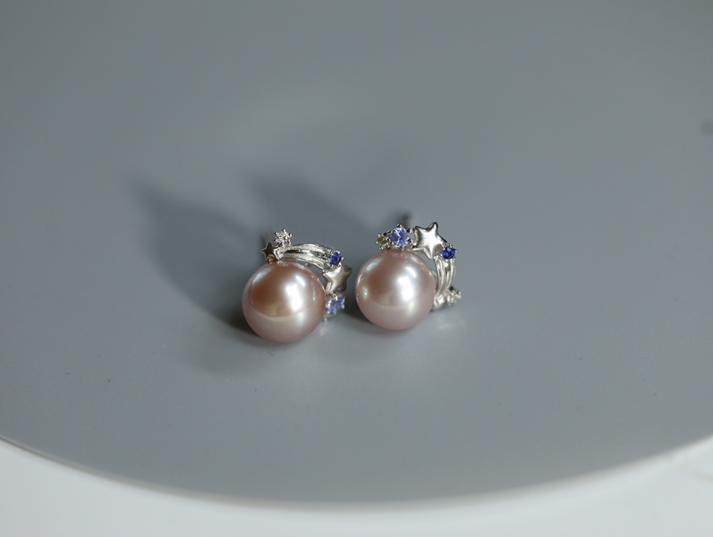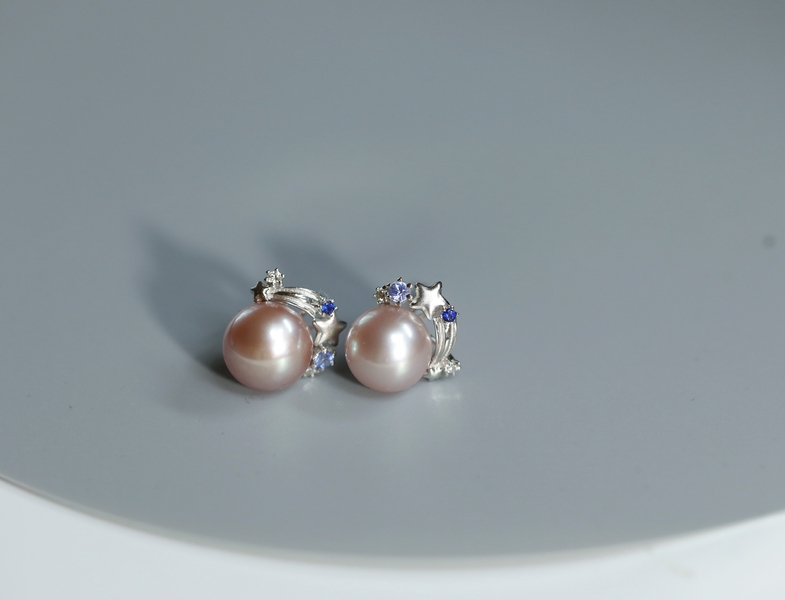 仙女蓝宝石 法式珍珠耳钉 | 把星星戴在耳朵上